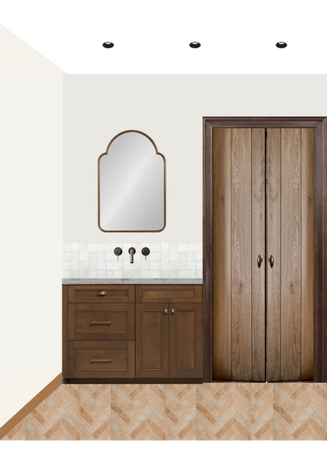 Para esta propuesta trabajamos un estilo Mid-Century, ya que el cliente amaba los colores anaranjados y las formas modernas pero con toques clásicos.
